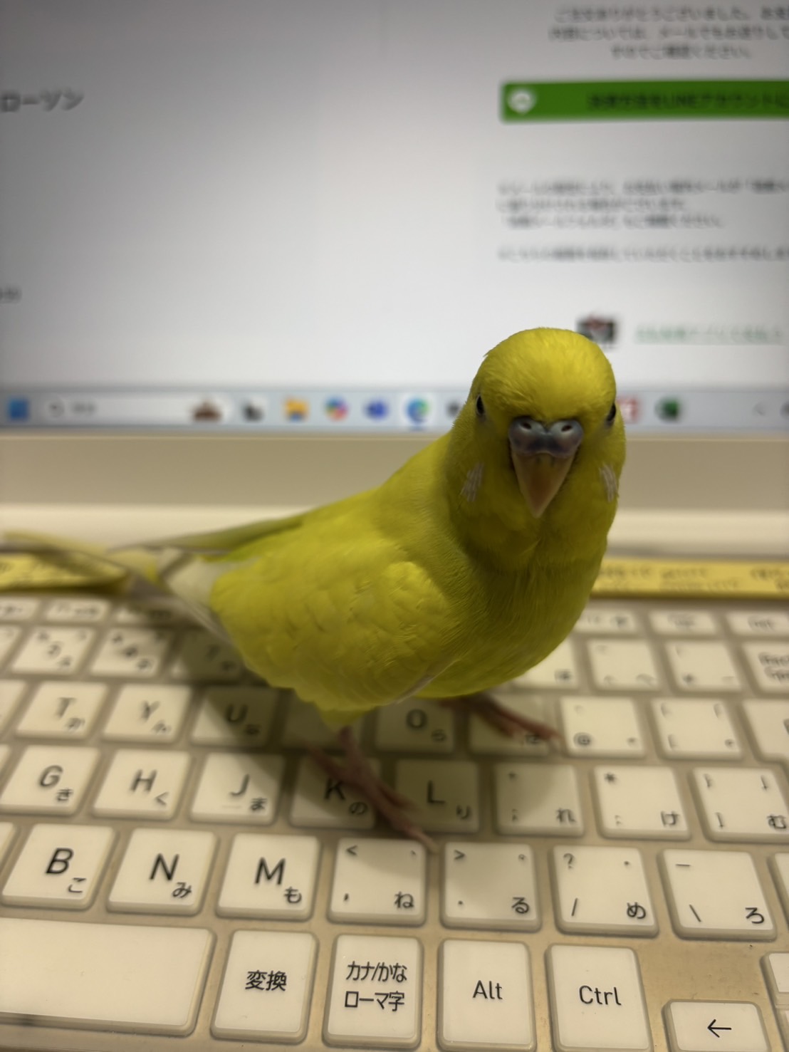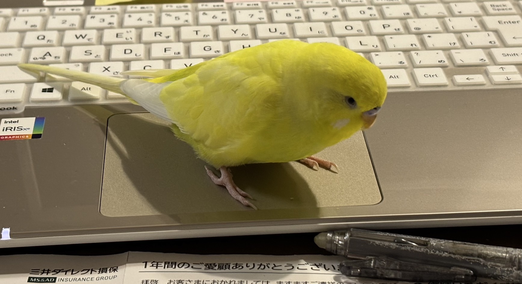 部屋で放鳥すると、なぜか毎回パソコン周りにテクテク歩いてきて、キーボードの上で“入力妨害”という名の残業をしてくれます。見積もりがはかどりません(汗😂