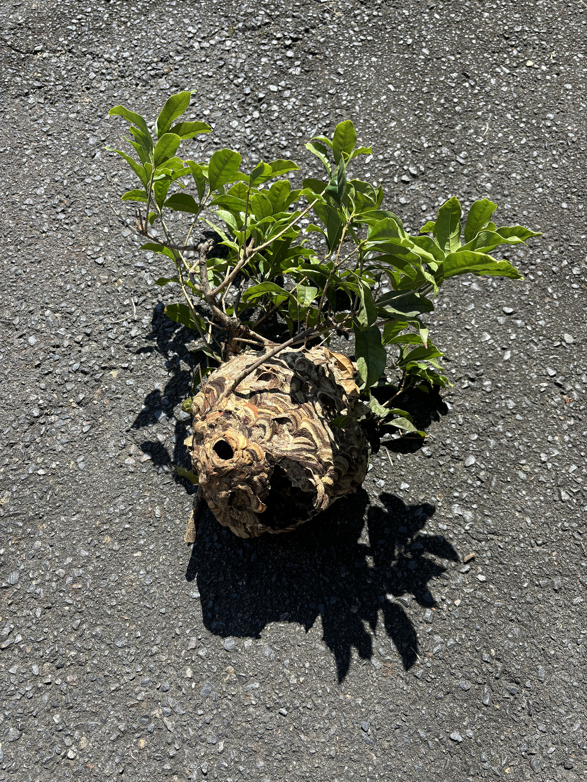 そして今回、久しぶりにド迫力の相手と遭遇しました。スズメバチの巣です。サイズはなんと… バレーボールくらい。現場で見つけた瞬間、空気がピンと張る感じ、あれは何度経験しても慣れません。