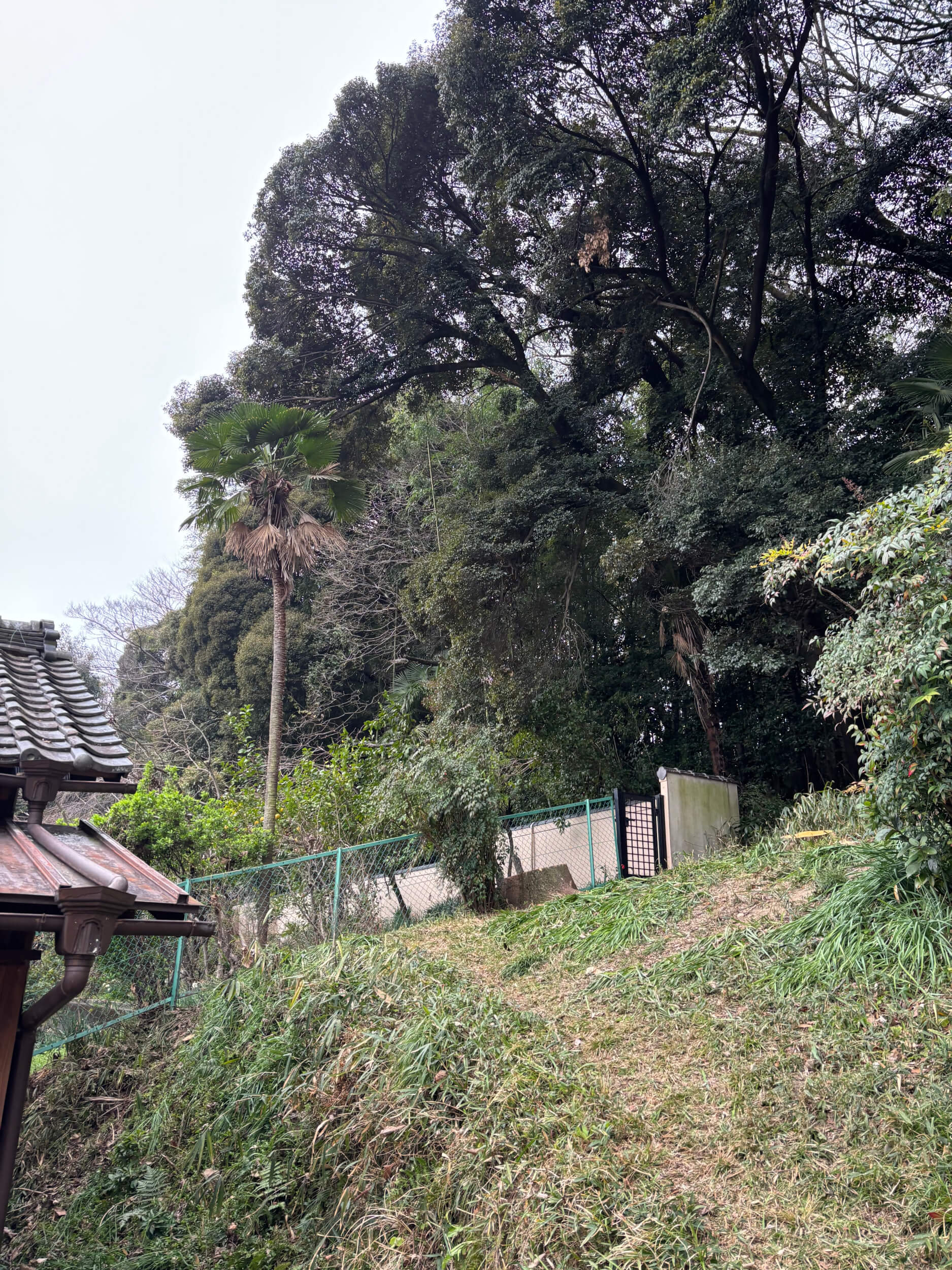 伐採は「切れば倒れる」ではなく、特に今回のような条件では切る前の準備で8割が決まると言っても過言ではありません。腐食の具合、幹の状態、重心、斜面角度、周囲の建物や電線、退避経路まで確認し、倒す方向を明確にしたうえで作業を進めました。その結果、近隣のお宅へ影響を出すことなく、事故もなく無事に伐採を完了しています。
